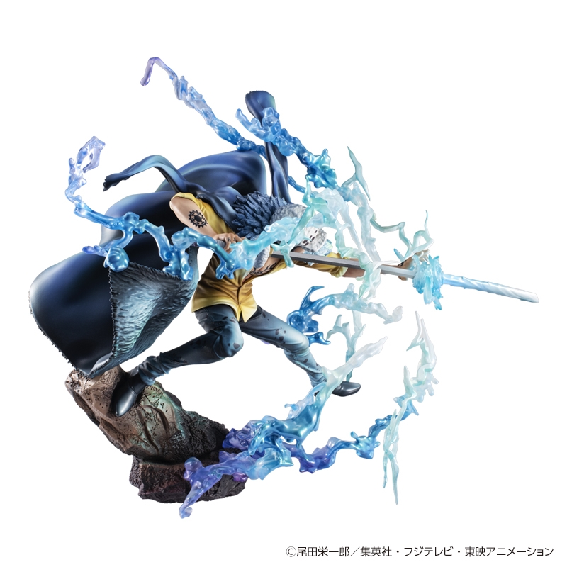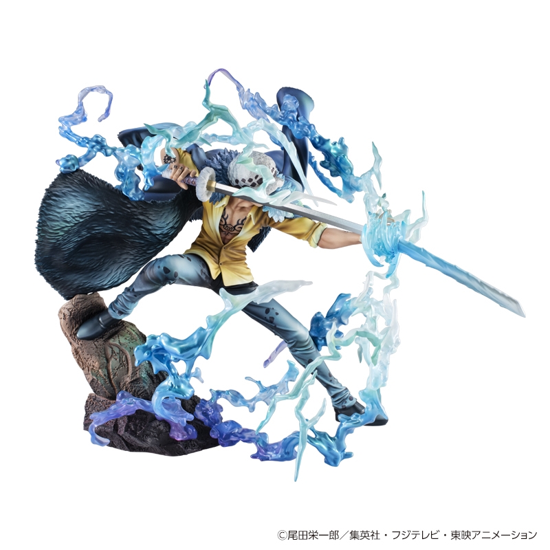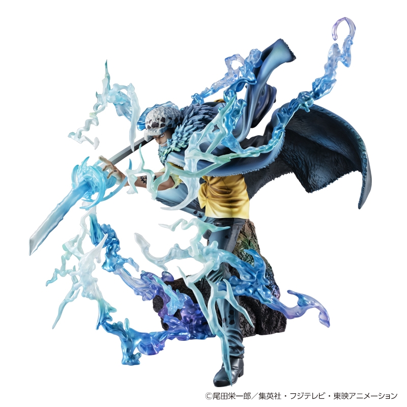 一時期は“王下七武海”に名を連ね、その後麦わらの一味と海賊同盟を結んだ「ハートの海賊団」船長、通称“死の外科医”トラファルガー・ロー。今回は鬼ヶ島での四皇“ビッグ・マム”との激闘をモチーフに、「オペオペの実」の能力を覚醒させたローの勇姿を劇中のイメージ通りに立体再現。