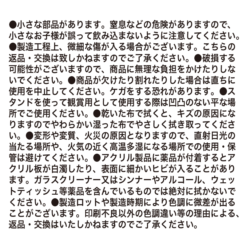 オモテウラの両面にそれぞれの表情がデザインされたアクリル製のスタンド。クールな表情、かわいい(?)表情もこれ一つで2倍楽しめる!全10種のうち何が出るかは開けてからのお楽しみ!