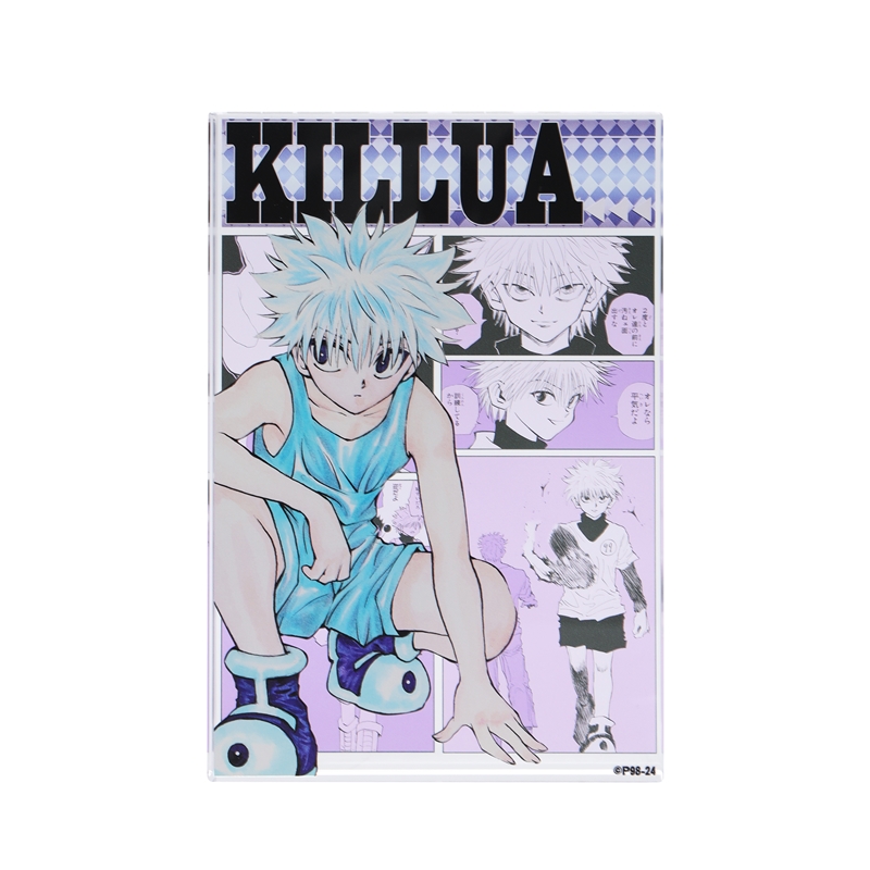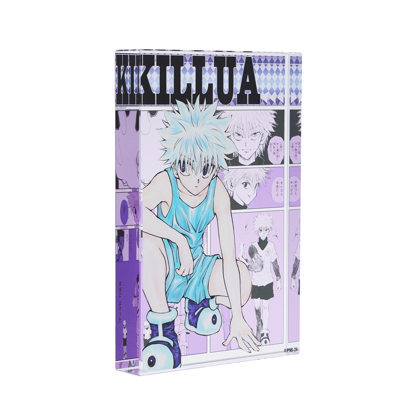 『HUNTER×HUNTER』キルア=ゾルディックのアクリルブロック!厚さ20mmのアクリルは存在感MAX!!キルア=ゾルディックのかっこいいカラーカットの背面には、名シーンのコマが散りばめられているぞ。インテリアにぴったり!