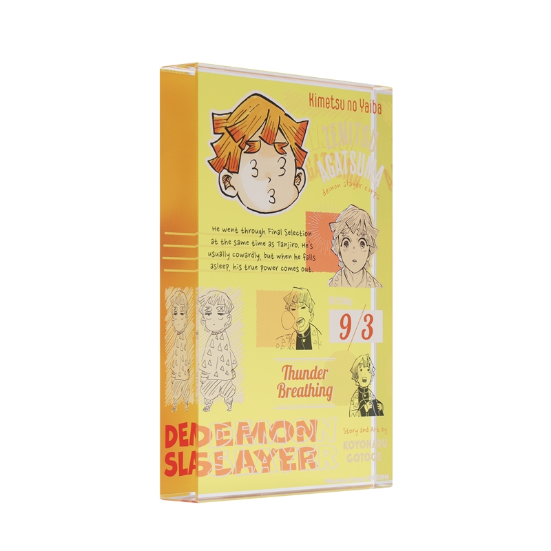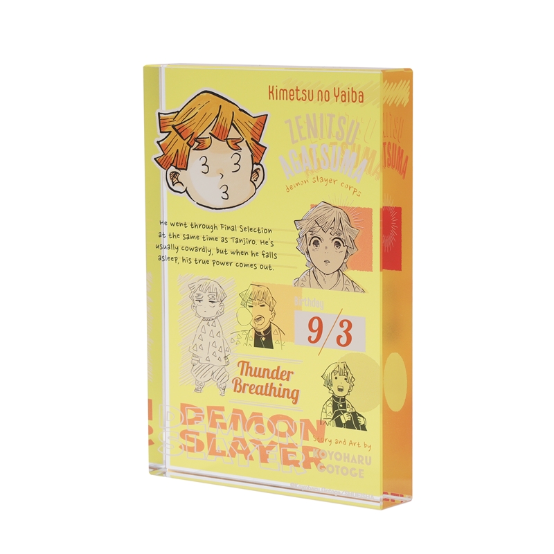 我妻善逸のイラストをポップでカラフルにデザイン!厚さ20mmのアクリルは存在感MAXで、インテリアにぴったり!!
