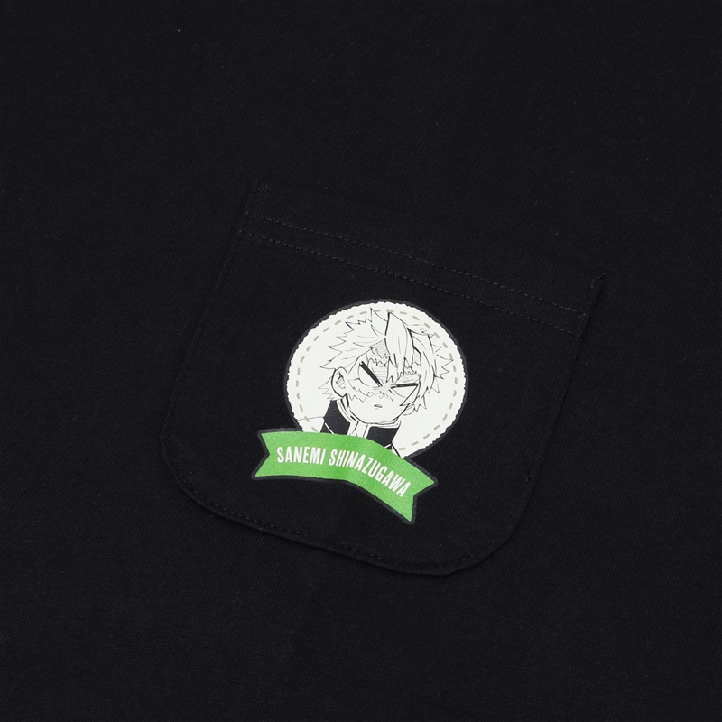 前面にはキャラクターイラストがワンポイントでデザインされたミニポケット付き!背面は不死川実弥のイラストをポップでカラフルにデザイン!