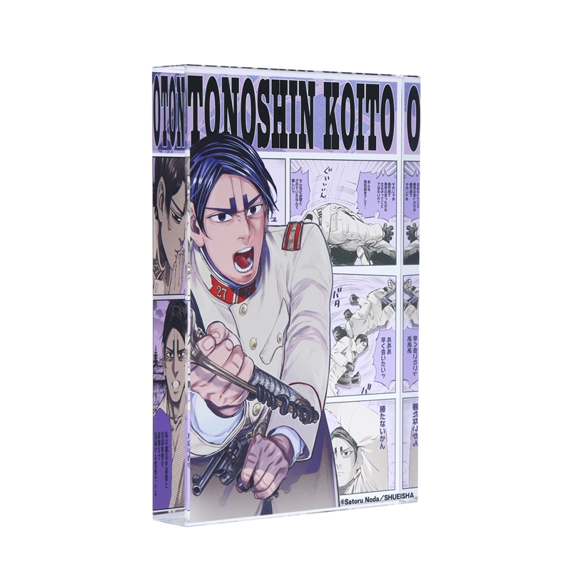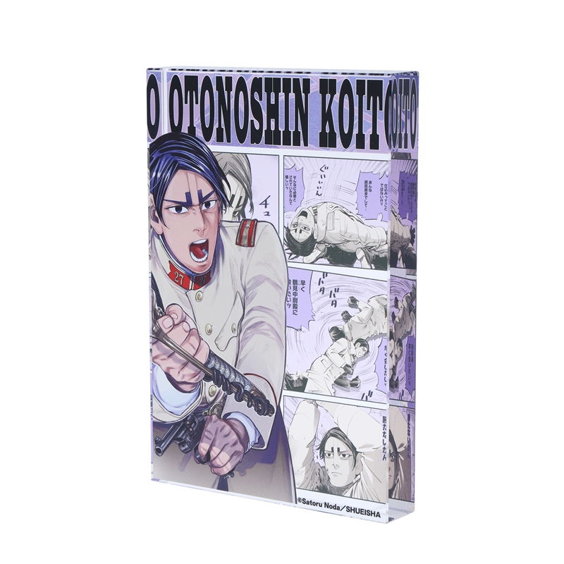 『ゴールデンカムイ』鯉登音之進のアクリルブロック!厚さ20mmのアクリルは存在感MAX!!鯉登音之進のかっこいいカラーカットの背面には、名シーンのコマが散りばめられているぞ。インテリアにぴったり!