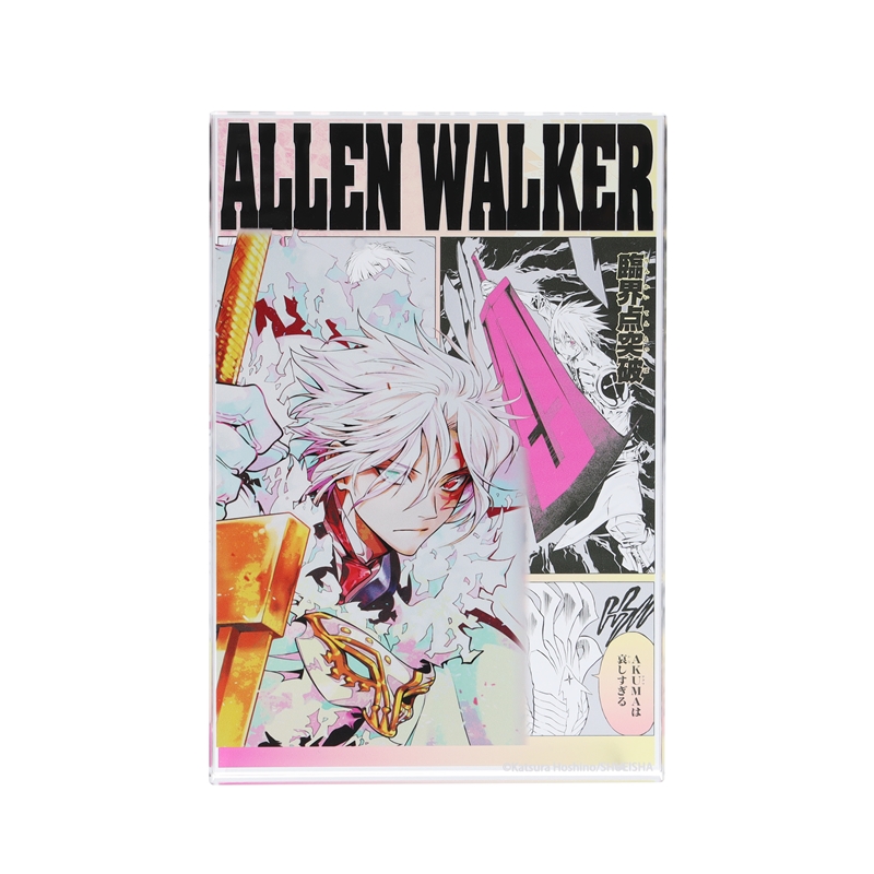 『D.Gray-man』アレン・ウォーカーのアクリルブロック!厚さ20mmのアクリルは存在感MAX!!アレン・ウォーカーのかっこいいカラーカットの背面には、名シーンのコマが散りばめられているぞ。インテリアにぴったり!