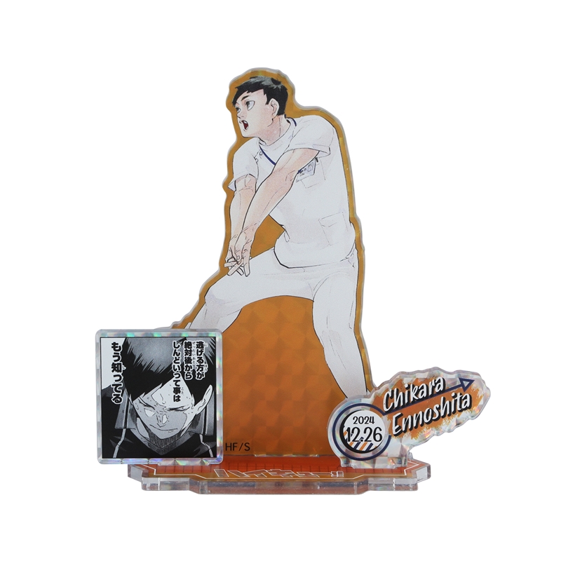 縁下力のカラーイラスト+名前&誕生日+作中の名場面のコマイラストのパーツが立体的に組みあがった、アクリルジオラマフィギュア!