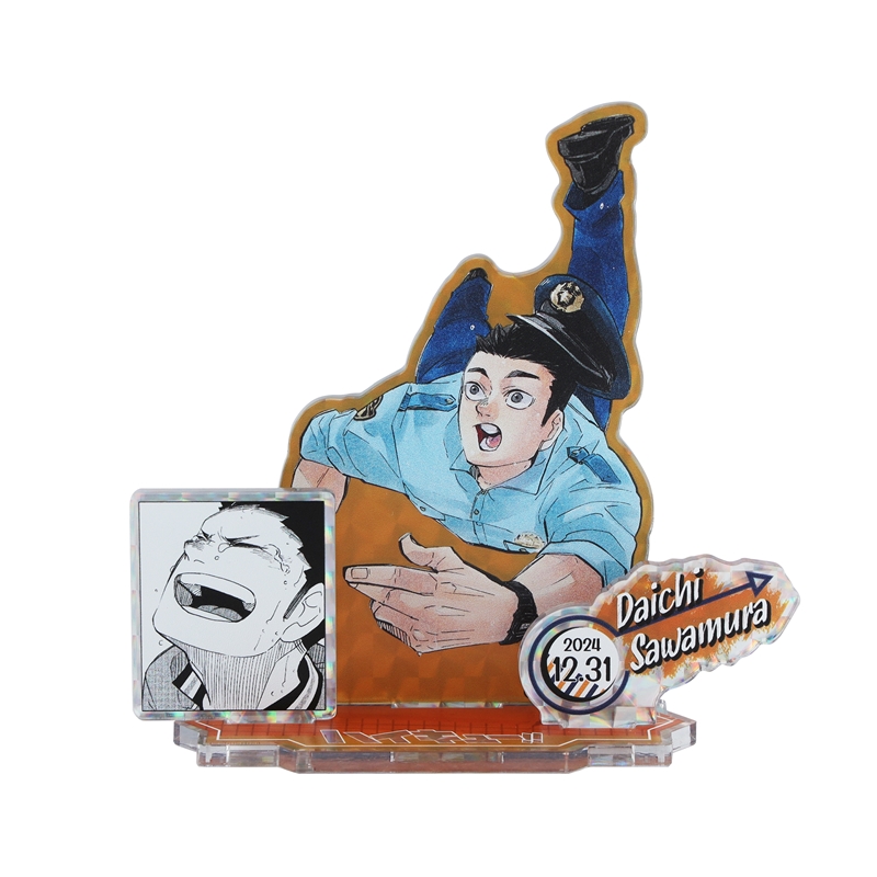 澤村大地のカラーイラスト+名前&誕生日+作中の名場面のコマイラストのパーツが立体的に組みあがった、アクリルジオラマフィギュア!