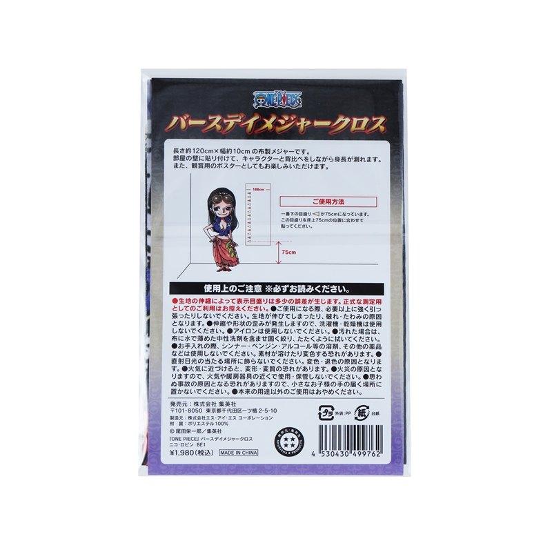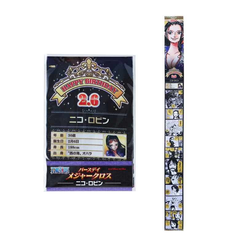 バースデイアイテムのニューカマー☆「バースデイメジャークロス」が登場!!!『ONE PIECE』ニコ・ロビンの身長&誕生日が名シーンとともにプリントされているぞ!身長の高さにあわせて壁に貼ると、ロビンと背比べもできる!!!