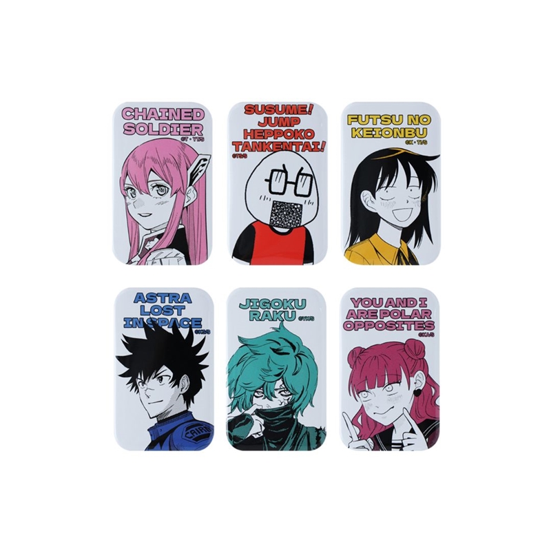 「少年ジャンプ+」10周年記念!フェアに登場した18作品の主人公がスクエア缶バッジに!誰に出会えるかは届いてからのお楽しみ♪