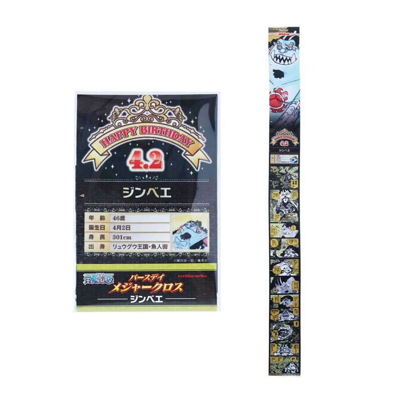 バースデイアイテムのニューカマー☆「バースデイメジャークロス」が登場!!!『ONE PIECE』ジンベエの身長&誕生日が名シーンとともにプリントされているぞ!身長の高さにあわせて壁に貼ると、ジンベエと背比べもできる!!!