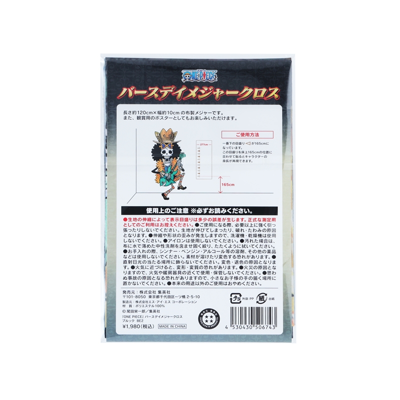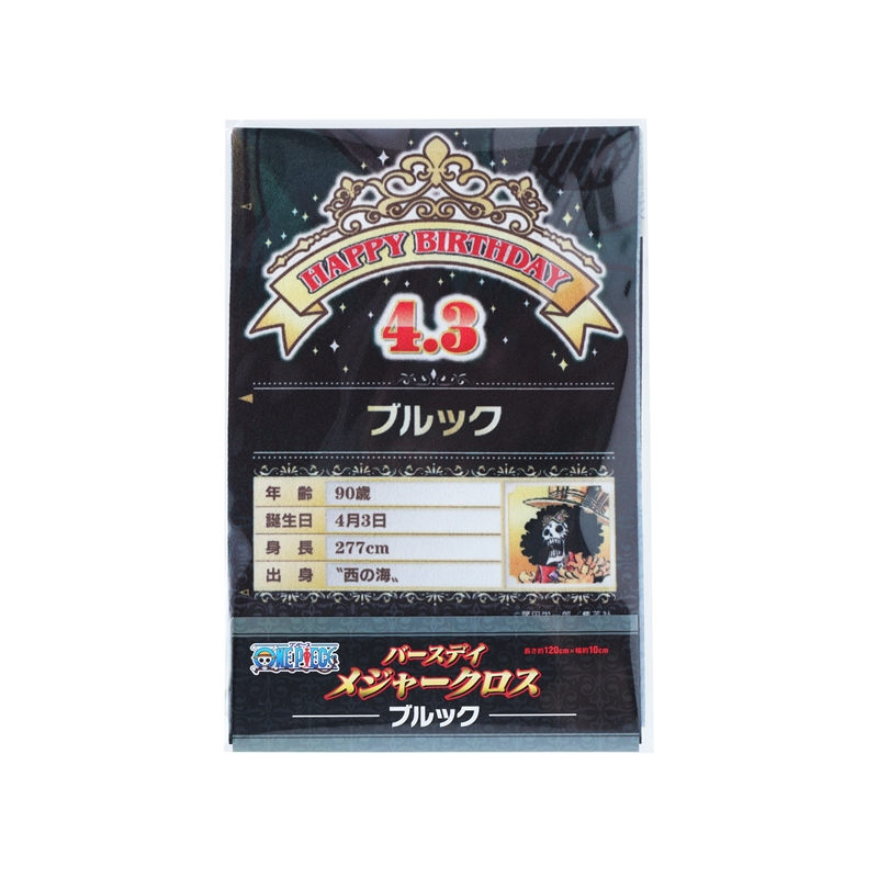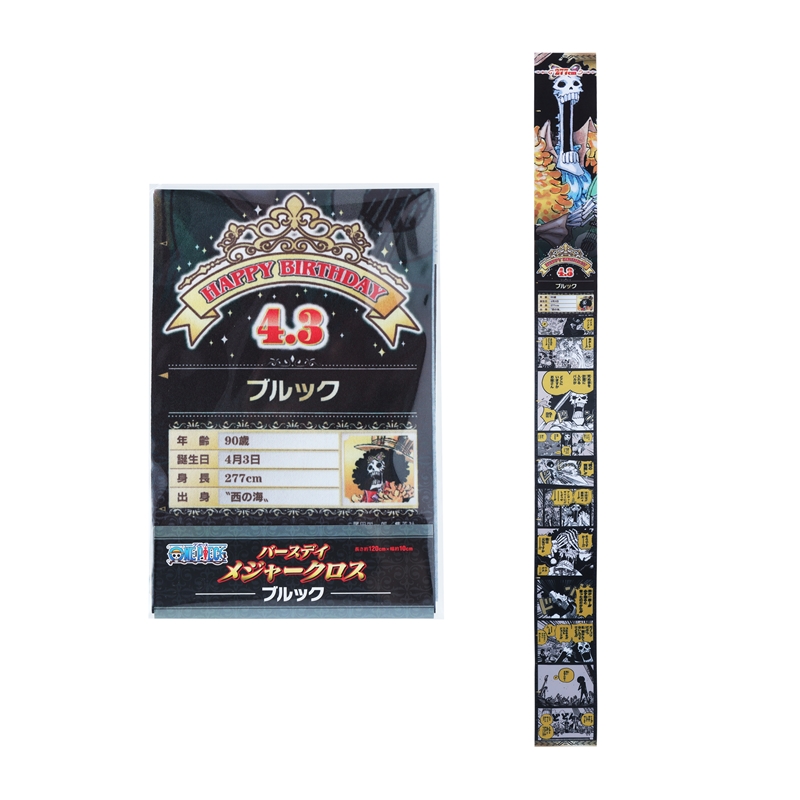バースデイアイテムのニューカマー☆「バースデイメジャークロス」が登場!!!『ONE PIECE』ブルックの身長&誕生日が名シーンとともにプリントされているぞ!身長の高さにあわせて壁に貼ると、ブルックと背比べもできる!!!