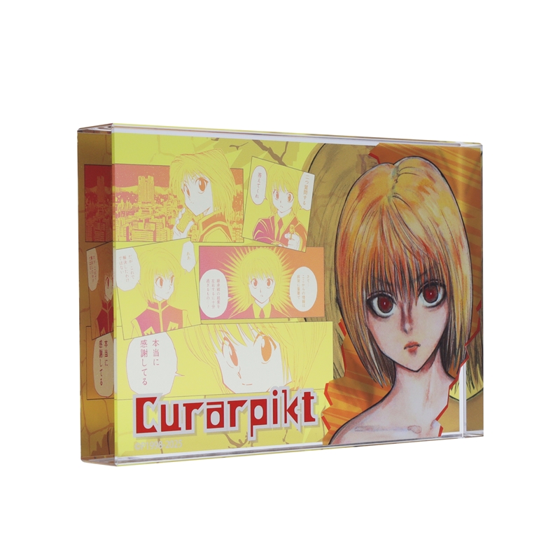 『HUNTER×HUNTER』クラピカのアクリルブロック!厚さ20mmのアクリルは存在感MAX!!クラピカのかっこいいカラーカットの背面には、名シーンのコマが散りばめられているぞ。インテリアにぴったり!