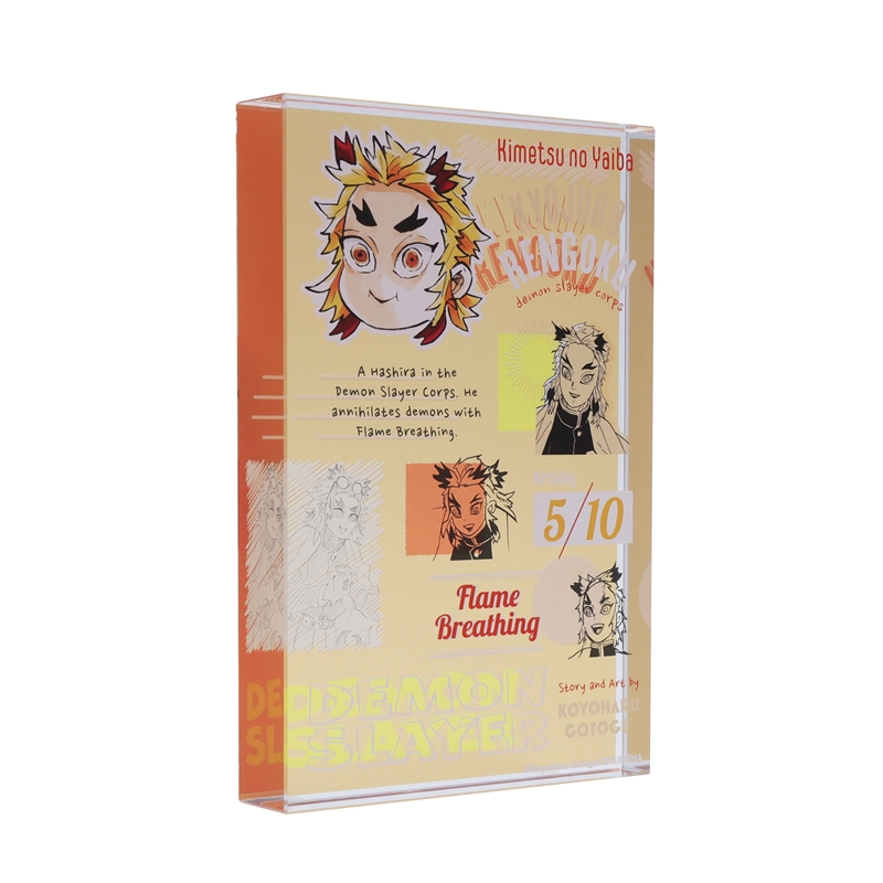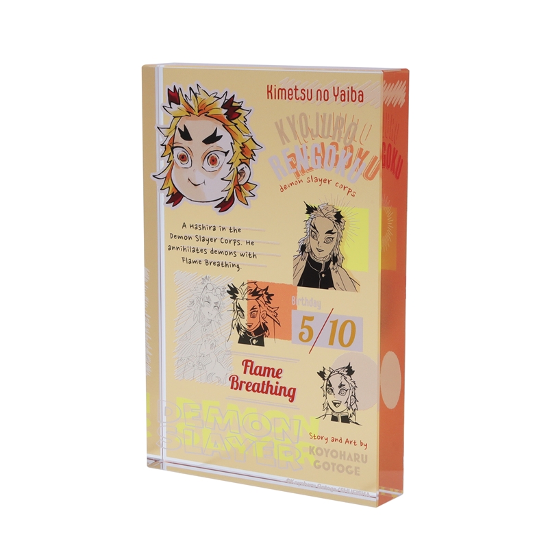 煉獄杏寿郎のイラストをポップでカラフルにデザイン!厚さ20mmのアクリルは存在感MAXで、インテリアにぴったり!!