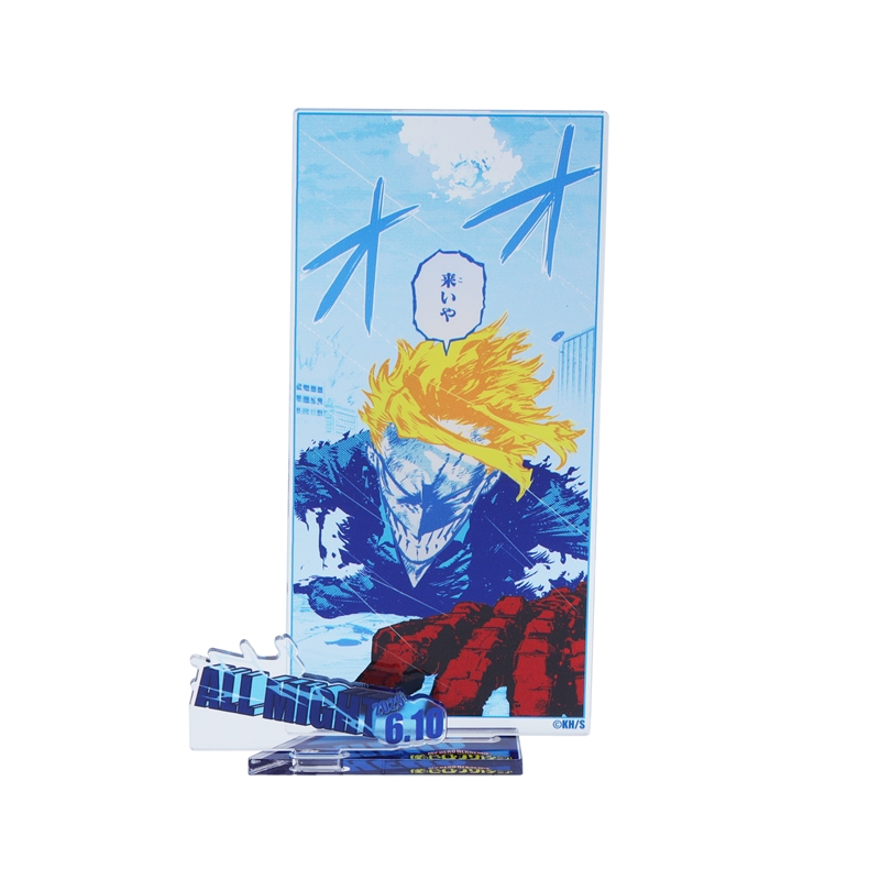 なんと、すべてのパーツが「箔押し」のアクリルジオラマフィギュア!オールマイトの名場面イラスト+誕生日&名前のパーツが立体的に組みあがる!!!圧倒的な存在感。集めて飾って楽しもう♪