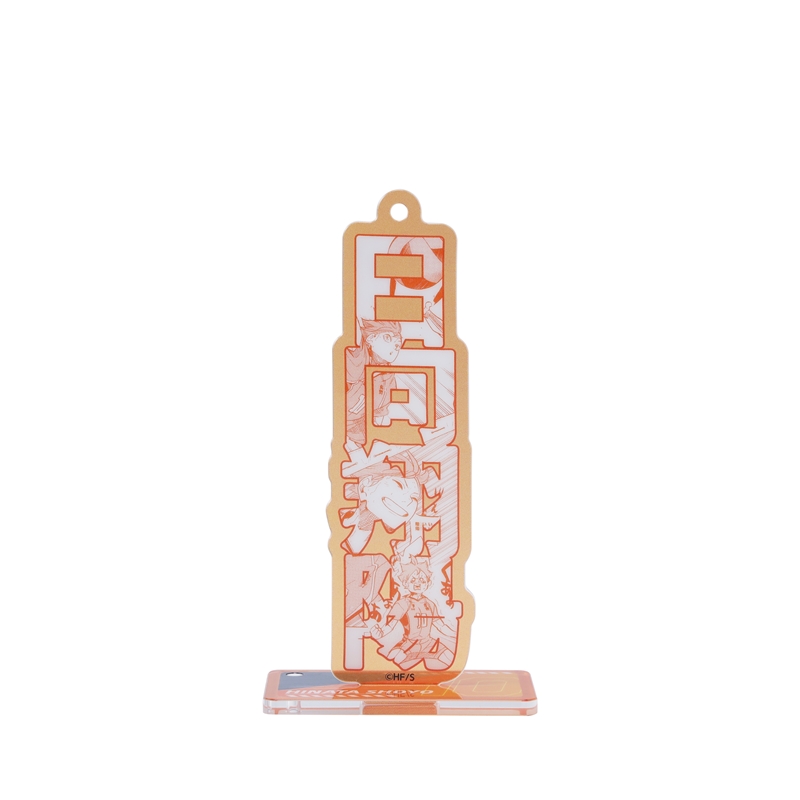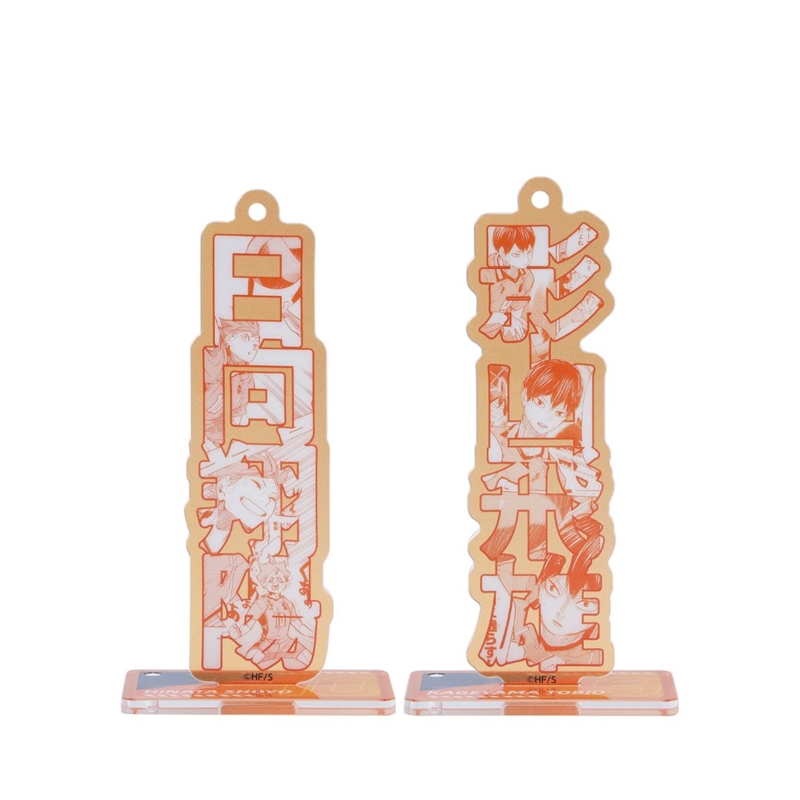 名前を形どったアクリルに、作中のカットを散りばめたアイテム! アクスタとしてもキーホルダーとしても使える2way仕様!日向と影山がセットに♪