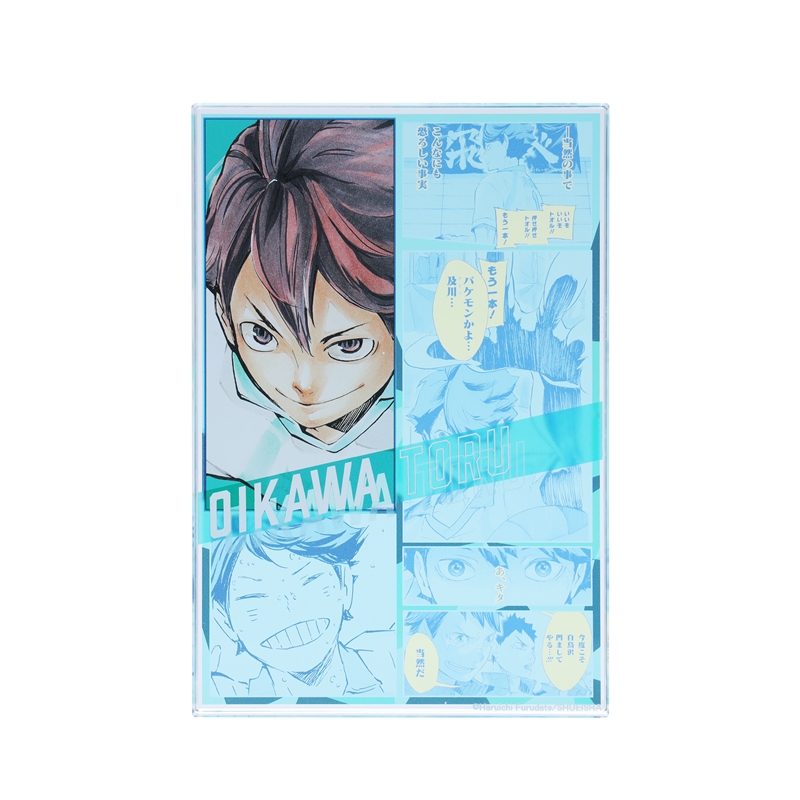 『ハイキュー!!』及川徹のアクリルブロック!厚さ20mmのアクリルは存在感MAX!!及川徹のかっこいいカラーカットの背面には、名シーンのコマが散りばめられているぞ。インテリアにぴったり!
