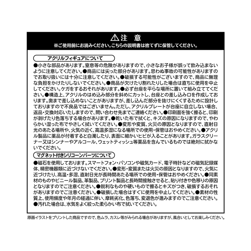 マグネット付きシリコーンパーツに台座をはめ込み、冷蔵庫やボードにくっつけることができるアクリルフィギュア!